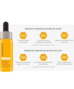 - 15 % de vitamina C (ácido L-ascórbico): Ilumina la apariencia de las decoloraciones de la piel para revelar una tez natural y radiante. Ayuda a desvanecer visiblemente las manchas oscuras.